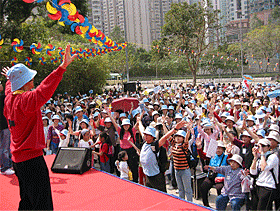 Research showed the importance of social support for adults to maintain physical activity. Building on the above successful experience, the district-wide “One Person One Activity” campaign aimed to encourage people to sustain a habit of physical activity through peer support. It included the publication of sports handbooks, award scheme, physical activity groups, basketball competition and a “sports showground”. About 2,500 local people were formed into more than 150 groups who represent invaluable resources in partnership for further building a physically active community. Outstanding groups who accumulated the highest number of exercise hours were awarded at the closing ceremony.