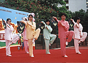 One of the sports group performing tai-chi fan dance at the closing ceremony |